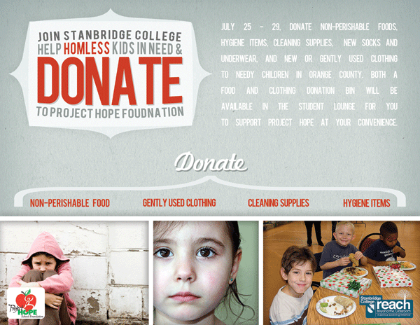 Stanbridge College Project Hope School Food and Clothing Drive